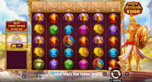 Athena’s classic white-robed appearance sets the stage here – with the later Wisdom of Athena 1000 reimagining her in golden armor and pushing the payout potential even further.